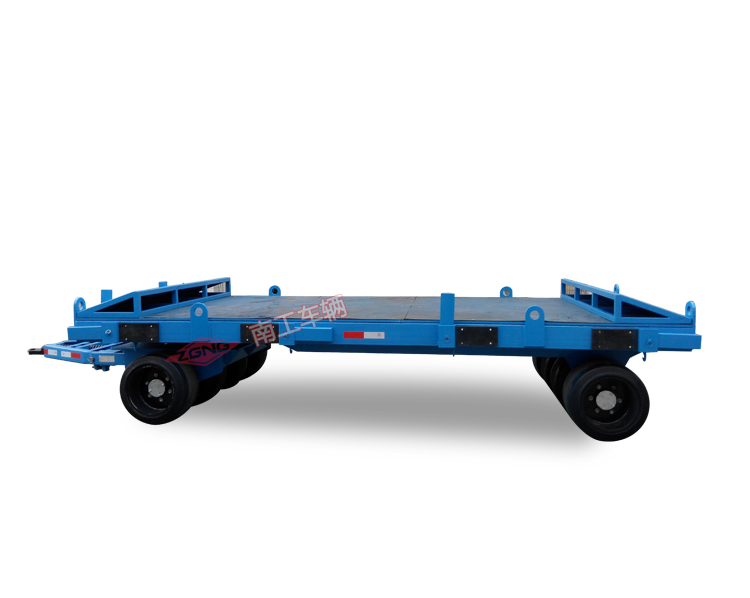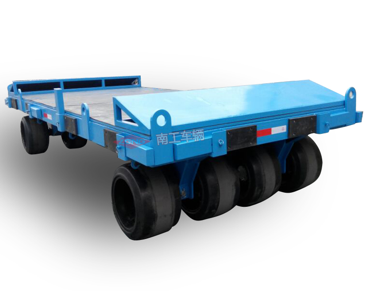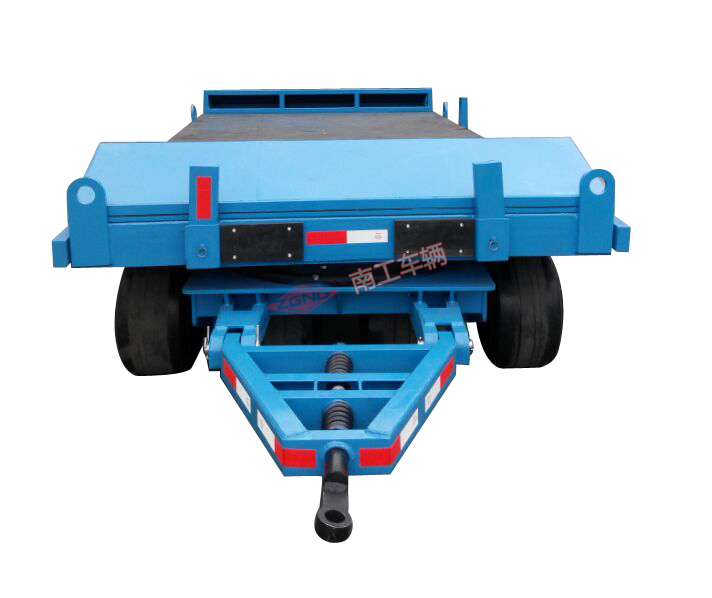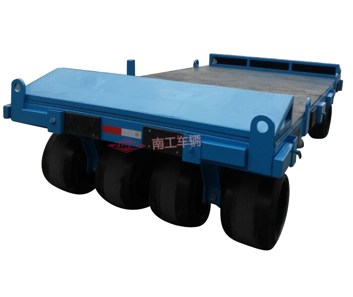 本平板拖車適用于工廠、碼頭、倉庫、物流中心等物流周轉(zhuǎn)運(yùn)輸,特別適用于模具周轉(zhuǎn),平板拖車承重35噸,平臺鋪20MM厚橡膠板。拖車本身無動力,可用5噸叉車、50KN牽引車牽引。